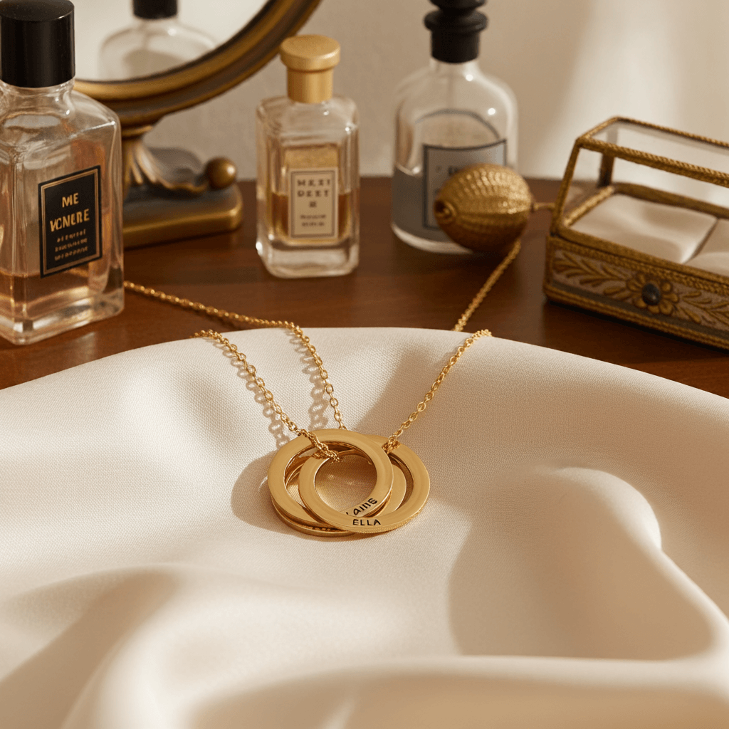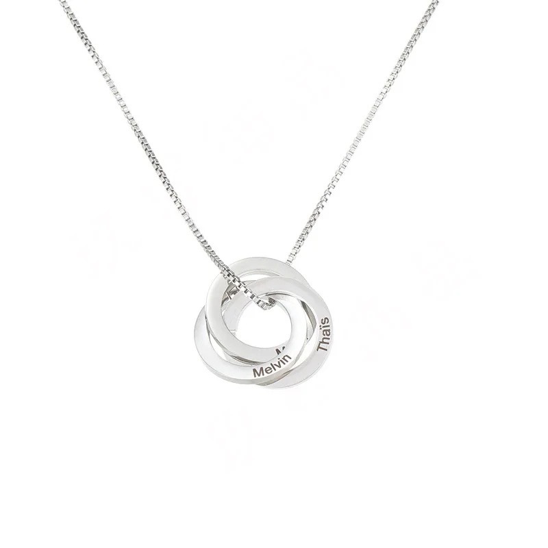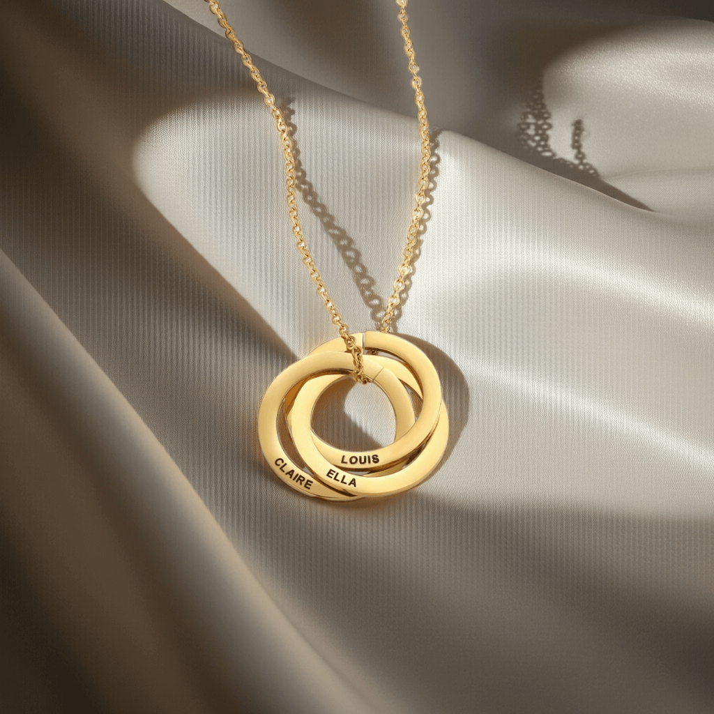 The Circle of Love Necklace is a timeless symbol of unity, eternity, and connection. Featuring three beautifully interlocked rings, this elegant design represents the inseparable bond shared between family, partners, and loved ones. Each ring can be engraved with a name, creating a personal keepsake that keeps those closest to your heart always with you.