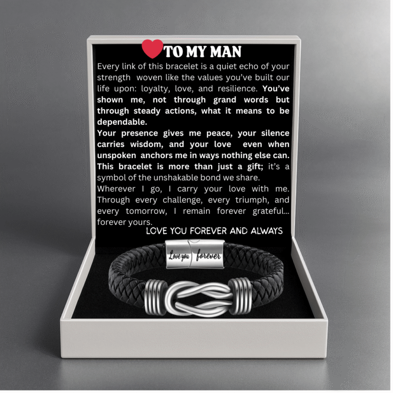 Its braided leather design reflects the lessons passed down without words – integrity, resilience, and the calm strength that fathers live by every day. The engraved clasp serves as a subtle reminder that even when few words are spoken, the message remains the same: “I’ve got you.”