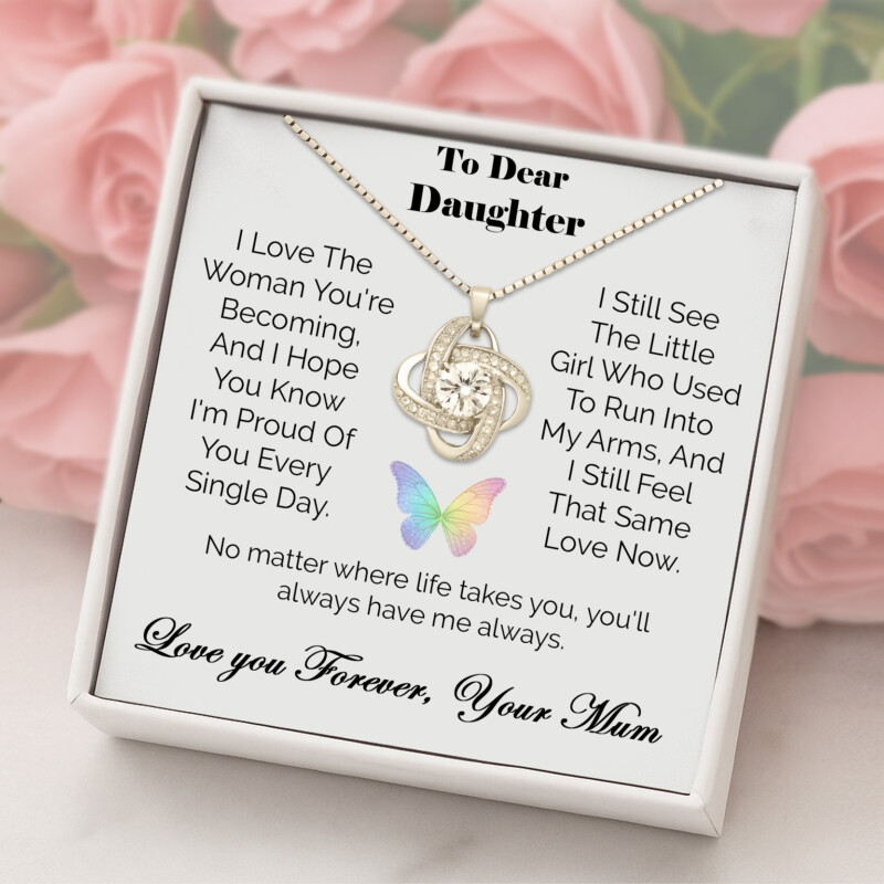 Celebrate the unbreakable bond between mother and daughter with the Eternal Knot Necklace, a symbol of two hearts forever connected. This elegant design represents love that endures across time, distance, and every chapter of life.