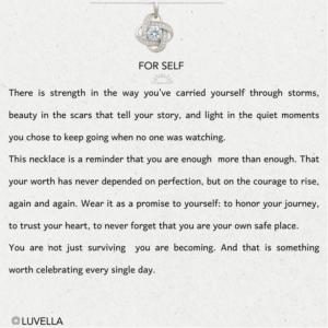 “There is strength in the way you’ve carried yourself through storms, beauty in the scars that tell your story, and light in the moments you chose to keep going. This necklace is a reminder that you are enough – more than enough. Wear it as a symbol of courage, trust, and growth.”