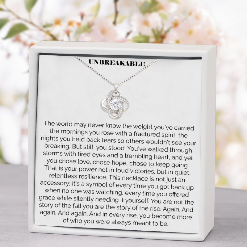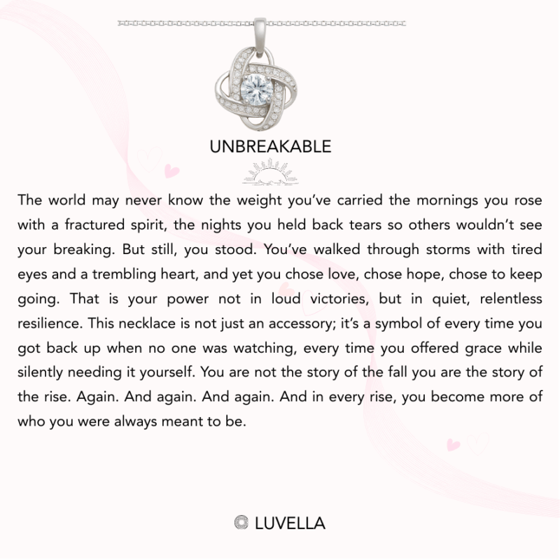 The Unbreakable Grit Eternal Knot Necklace celebrates resilience, courage, and inner power — a meaningful keepsake for anyone who continues to rise through life’s challenges.