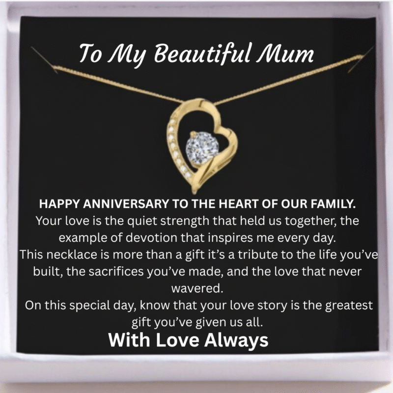 Celebrate your mum with a gift as timeless as your bond. The Happy Anniversary – Mum Bound by Love Necklace is a lasting keepsake of gratitude, love, and the strength she’s shared every step of the way.