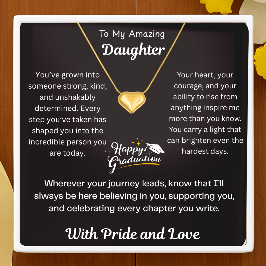 Happy Graduation Daughter Golden Heart Necklace – Strength & Pride