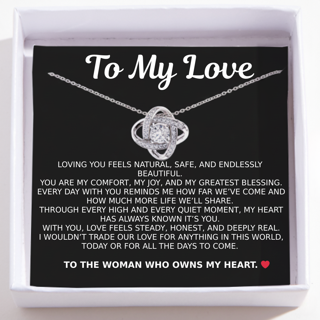 With its elegant knot design and sparkling centerpiece, this necklace captures the promise of forever a thoughtful Valentine’s gift for the one you look forward to building a lifetime with.