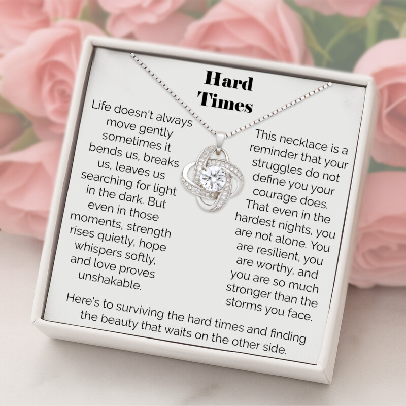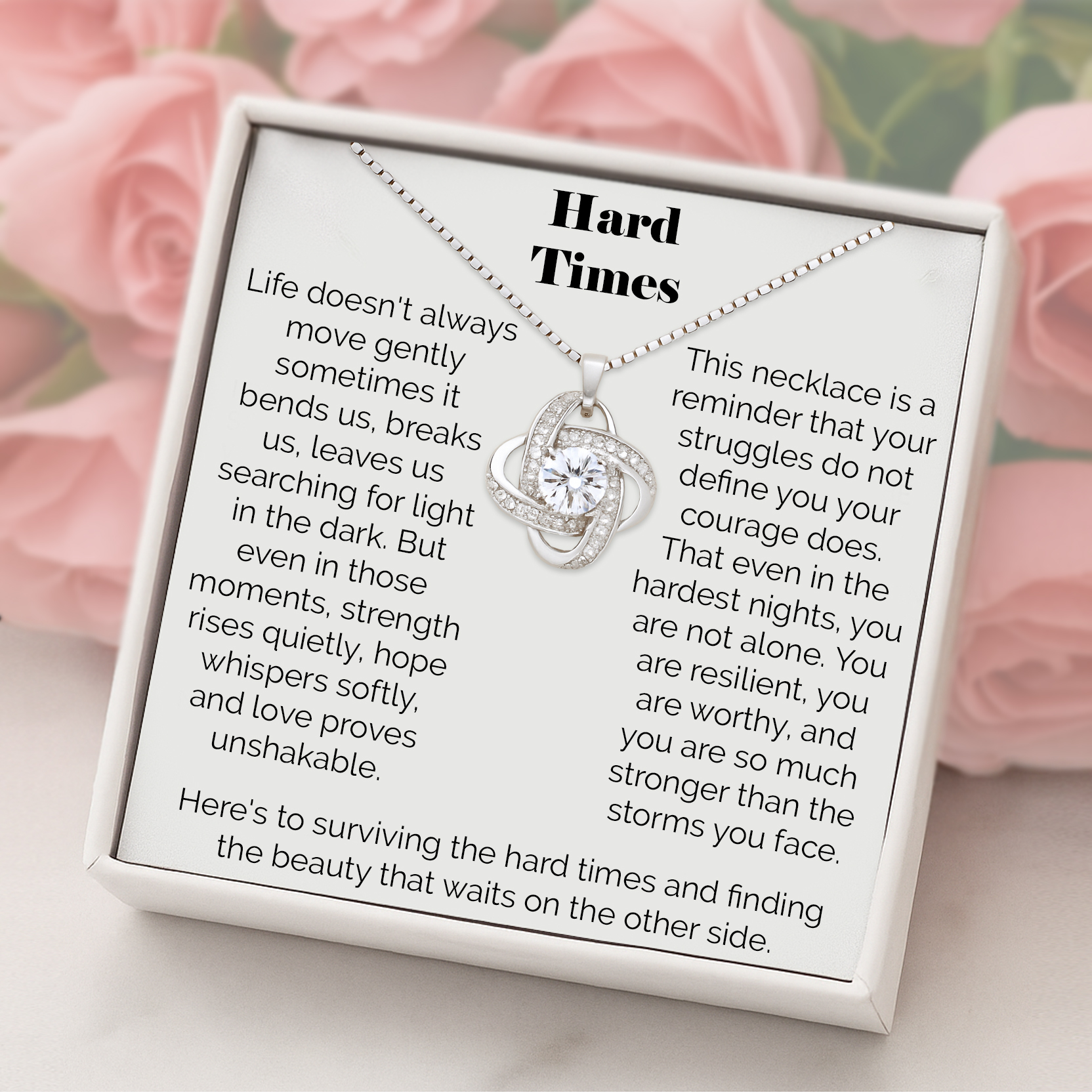 The Through Every Storm – Eternal Knot Necklace honors resilience, courage, and compassion – a meaningful keepsake for anyone navigating challenges or celebrating the beauty of perseverance.