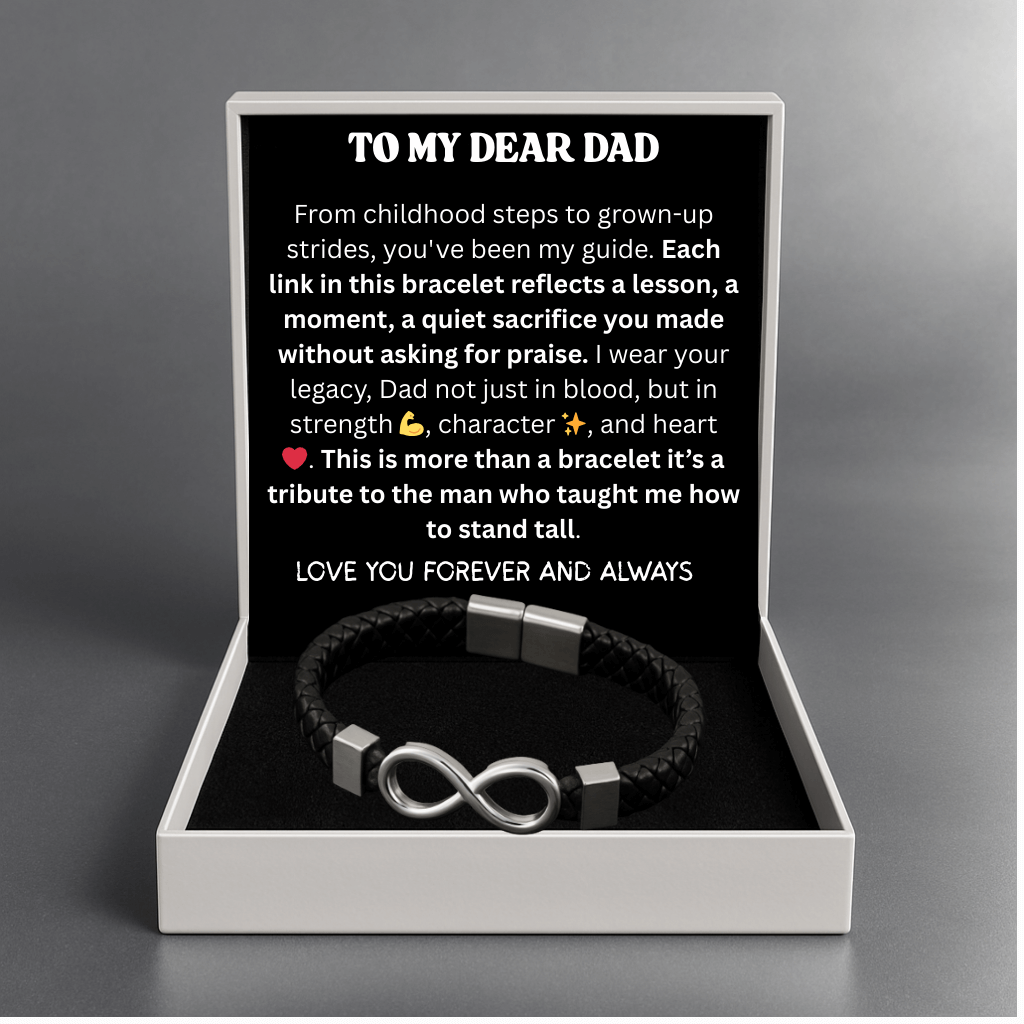 From early memories to every milestone, this bracelet represents a father’s steady presence and quiet strength. The Infinity Bond Bracelet was designed as a tribute to the man who taught resilience, patience, and unconditional support through example.