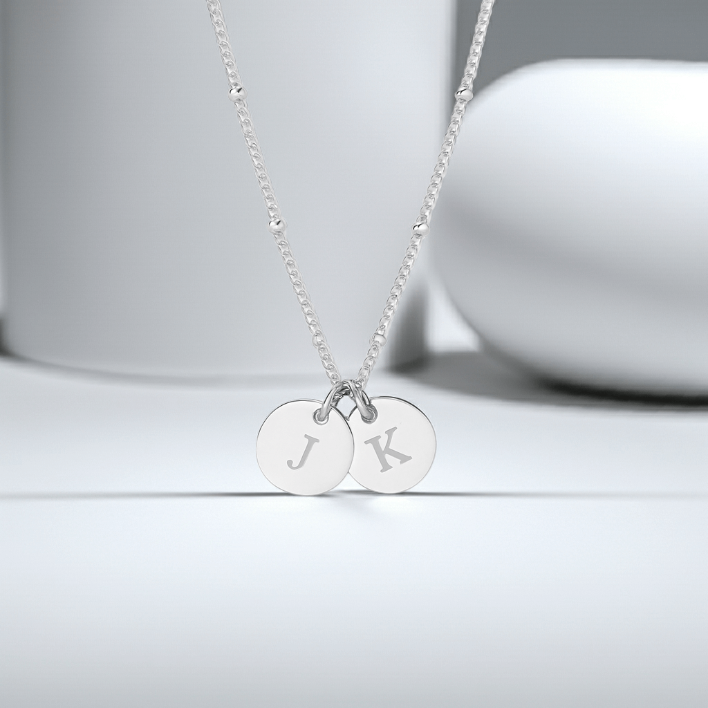 Show your mum how much she means to you with the Personalized Initial Disc Necklace for mum. Featuring two sleek initial charms, this elegant piece represents the unbreakable bond between mother and child. Whether it’s her children’s initials or a special family pairing, this necklace is a heartfelt keepsake she’ll treasure forever.