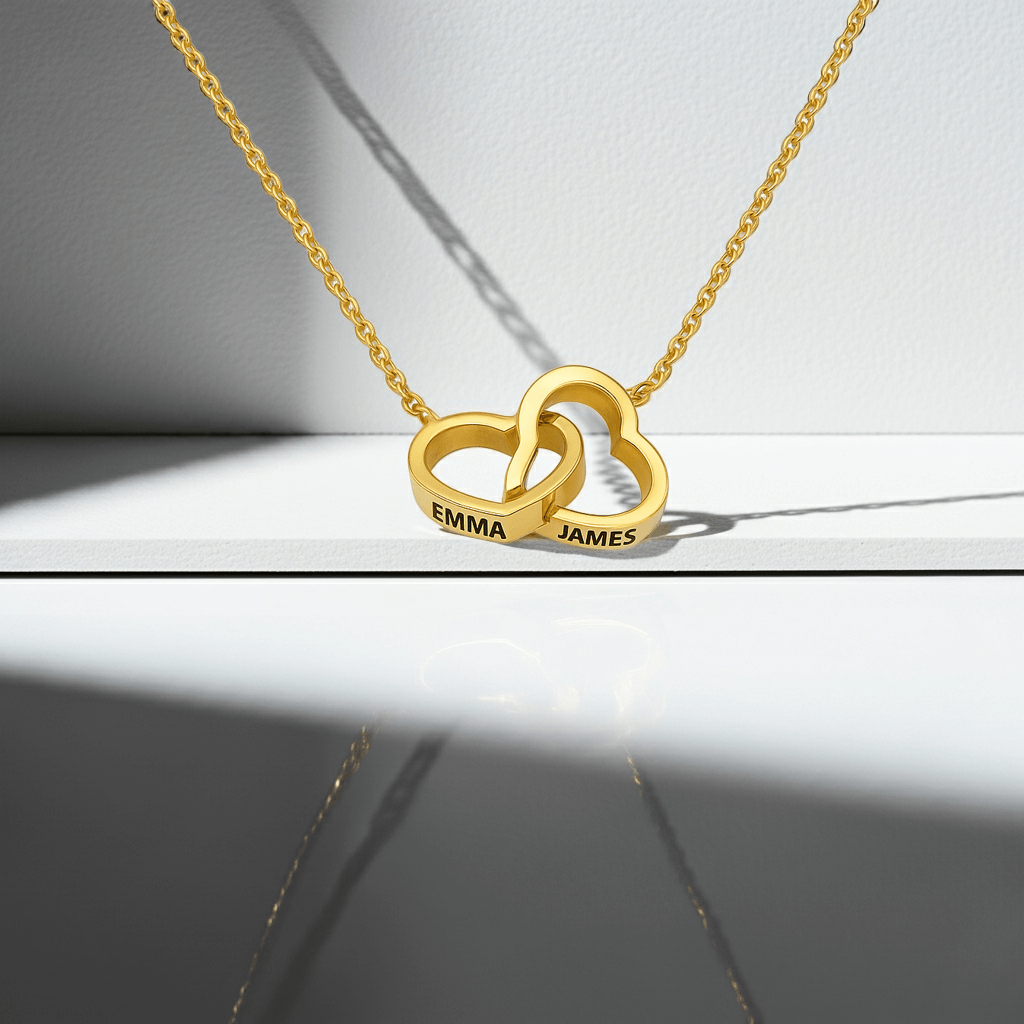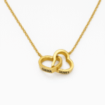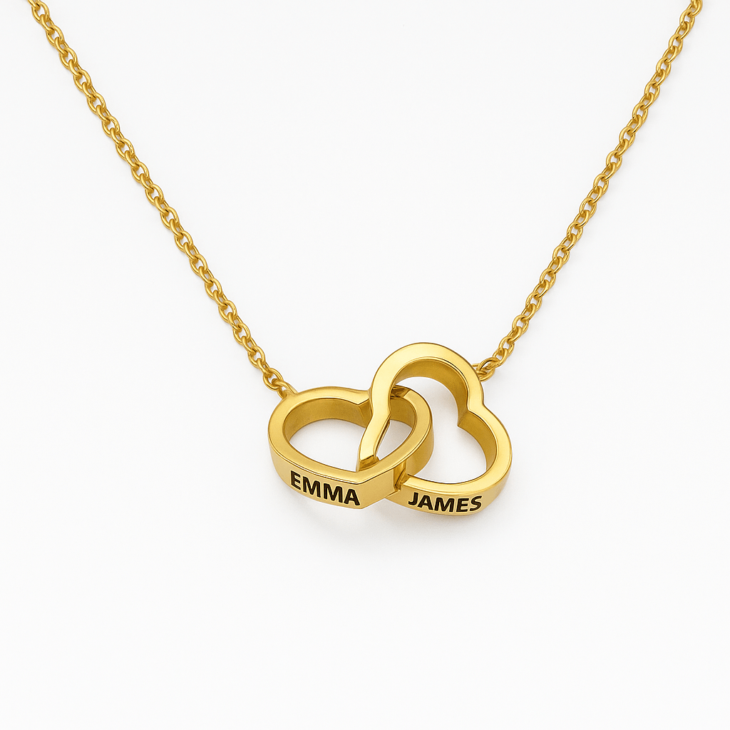 Elegant personalized necklace featuring two interlocking hearts a meaningful gift symbolizing love, unity, and family connection.