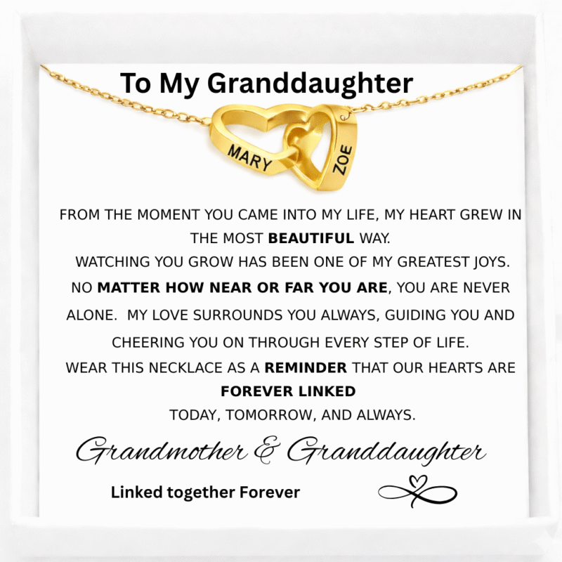 Celebrate the beautiful bond between a grandmother and her granddaughter with this Interlocking Hearts Name Necklace a timeless symbol of love, wisdom, and a connection that lasts forever.