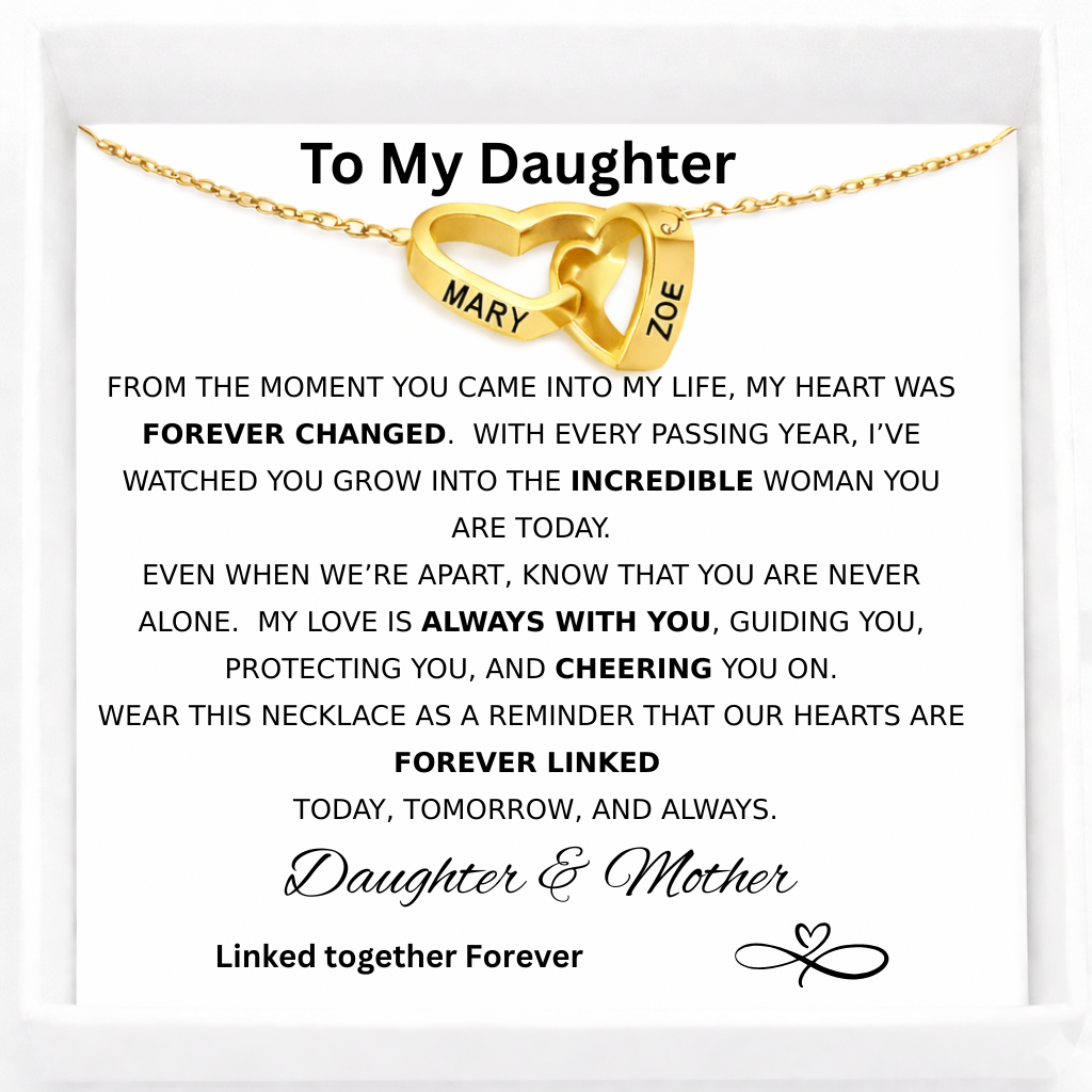 Celebrate the unbreakable connection between a mother and her daughter with this Interlocking Hearts Name Necklace a timeless symbol of love, guidance, and forever connection.