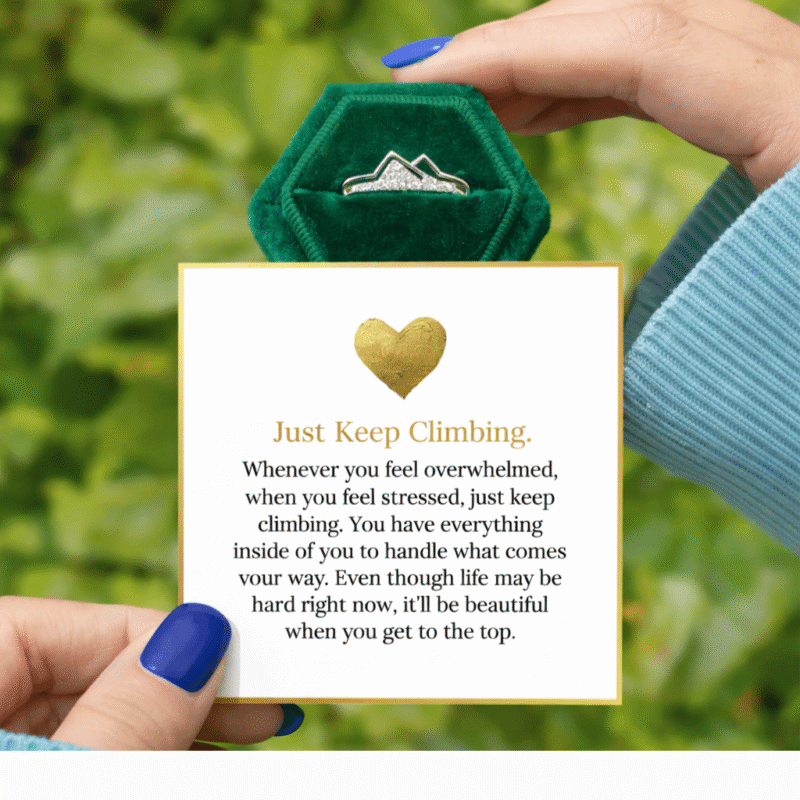 The Just Keep Climbing Ring is inspired by the strength it takes to keep moving forward, even in uncertain moments. The mountain design symbolises resilience, growth, and the courage to rise above challenges one step at a time.