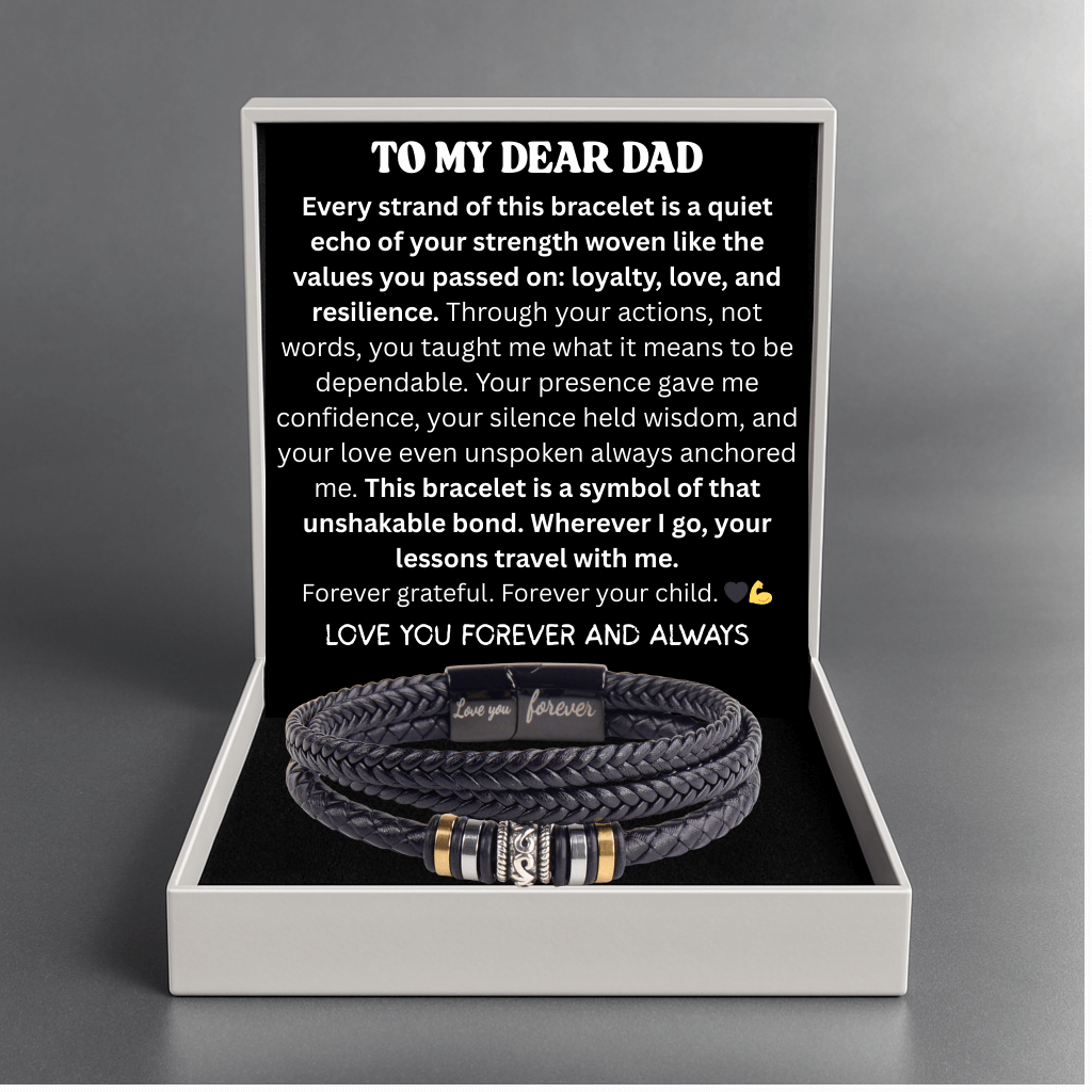Every strand of this bracelet carries the quiet strength of the values your dad has passed on — loyalty, love, and resilience. The Braided Strength Bracelet is more than an accessory; it’s a lasting symbol of the unbreakable bond between a father and child.