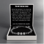The Legacy of Love Bracelet is a tribute to a father’s unwavering strength, guidance, and devotion. Every detail of this bracelet — from its bold stainless-steel design to its enduring craftsmanship – reflects the timeless values he’s passed down through the years.