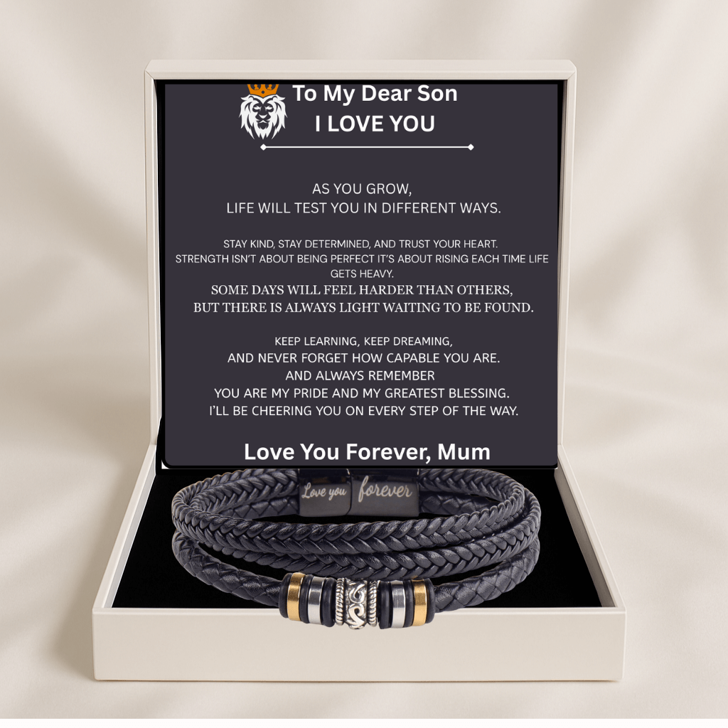 Express your pride and support with the Engraved Love You Forever Bracelet , a meaningful accessory designed to remind your son of courage, confidence, and love wherever life takes him.