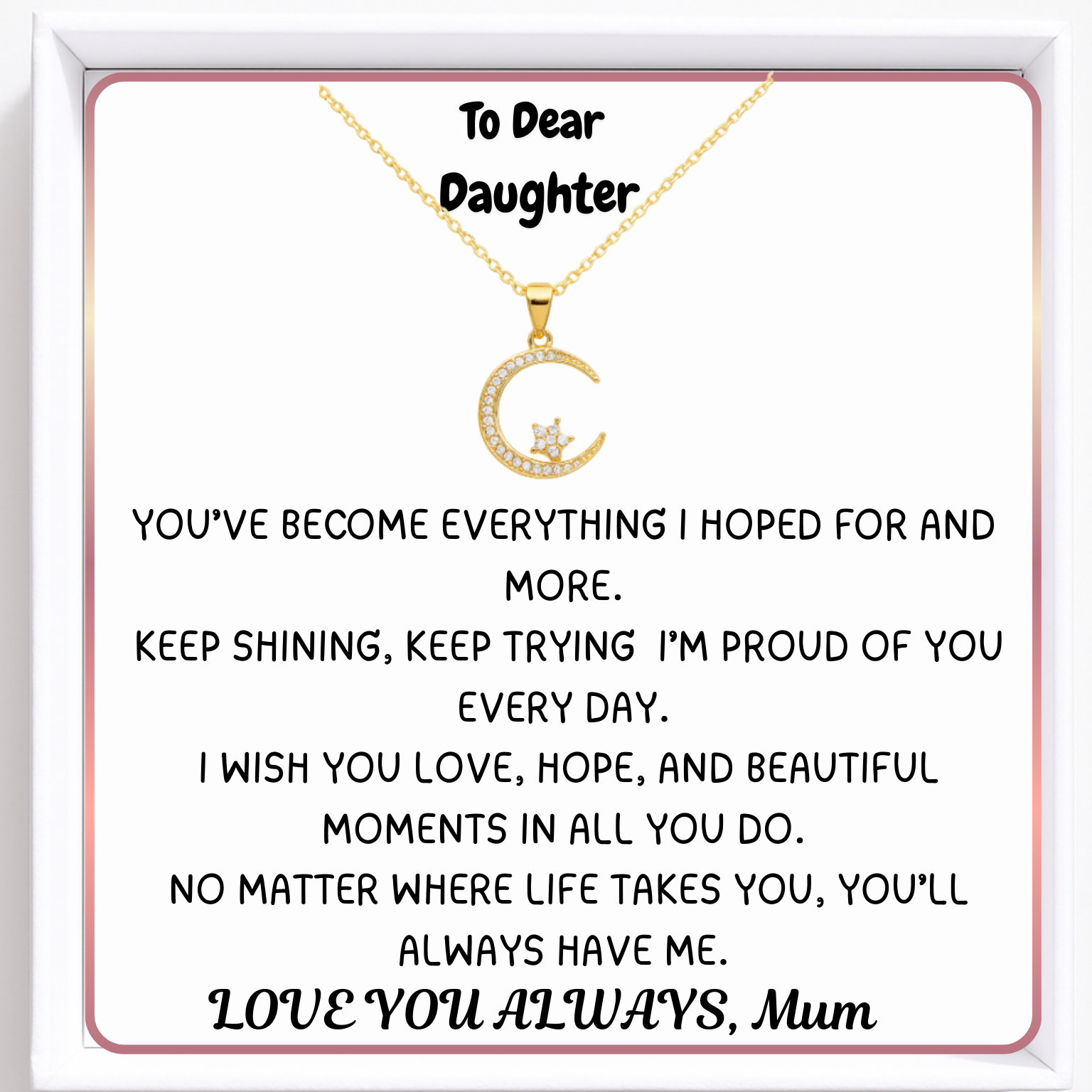 Your daughter is your brightest light – strong, kind, and full of promise. The My Guiding Star Necklace is a heartfelt reminder that no matter how far she travels, she will always carry your love and guidance with her.