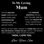 “You’ve held my hand through so many years, and supported me through my joys and my tears. I am forever grateful for all that you are, and all that you taught me to be. For without you, there is no me. For all of the times I forgot to thank you, for the million special things you do, for all the words I don’t always say, I need to say the words: Mom, I love you. Love, Your Son.”