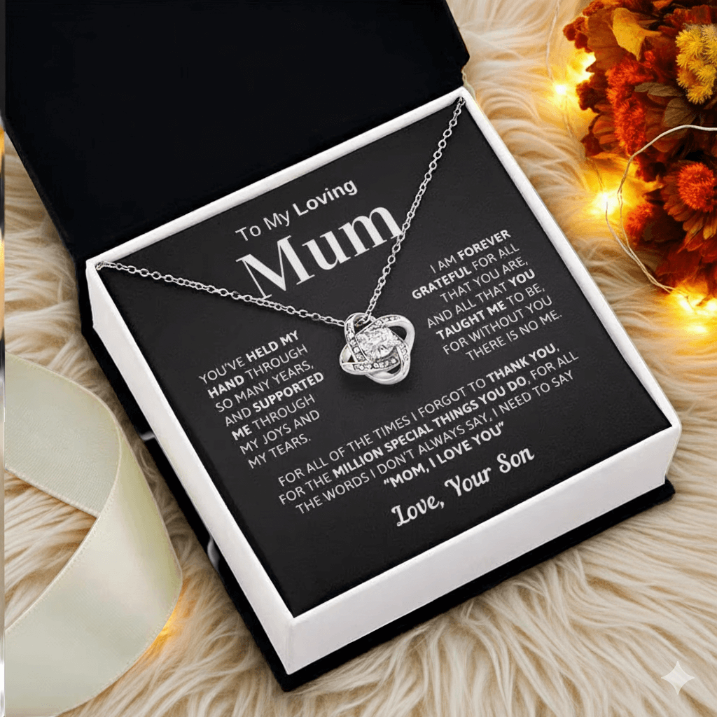 The Love Knot Necklace – From Son symbolises the eternal bond between mother and son a graceful reminder of love, gratitude, and connection that lasts through the years.