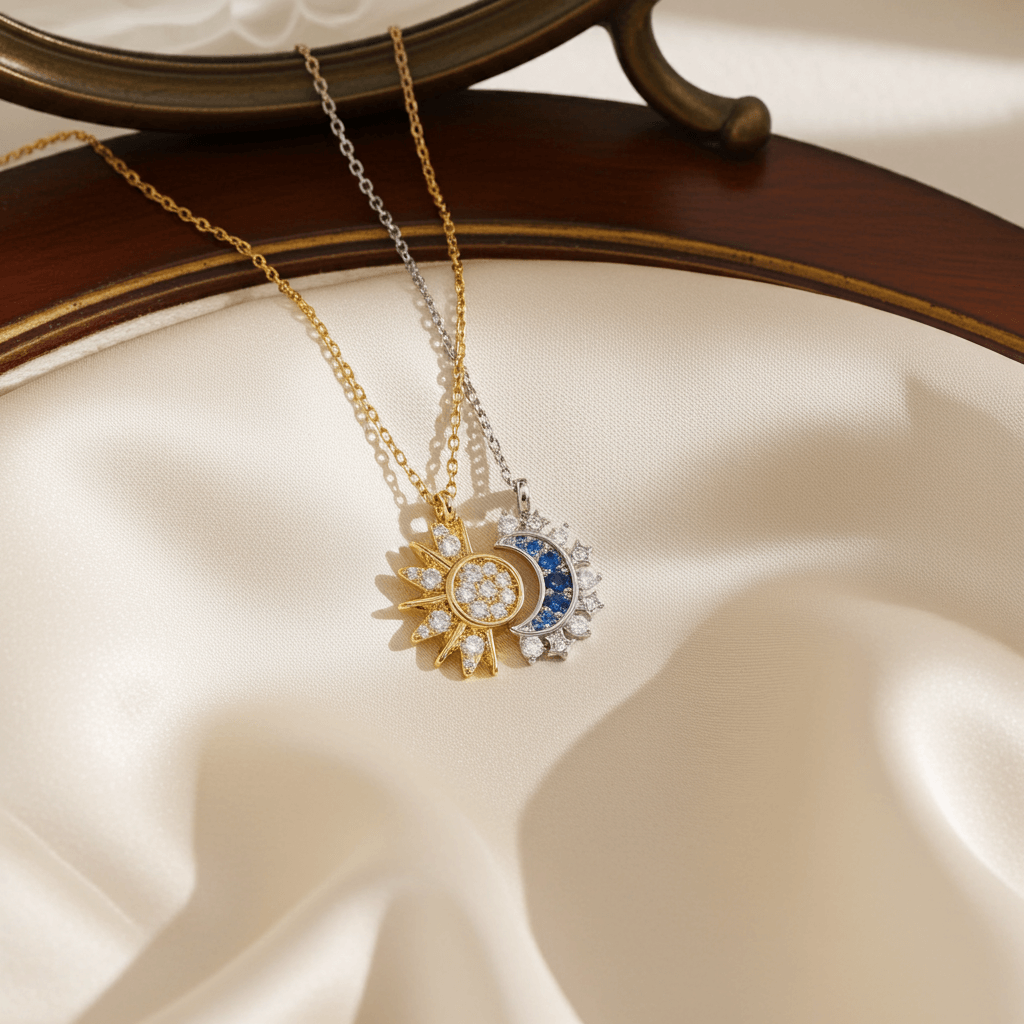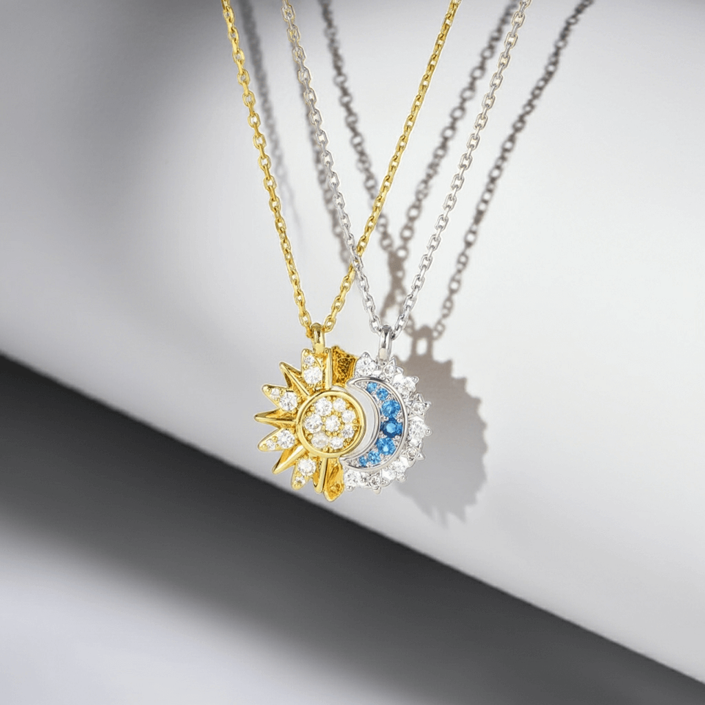 The Sun & Moon Necklace Set represents light and balance — a meaningful keepsake that reminds best friends that, no matter the distance, they always share the same sky.