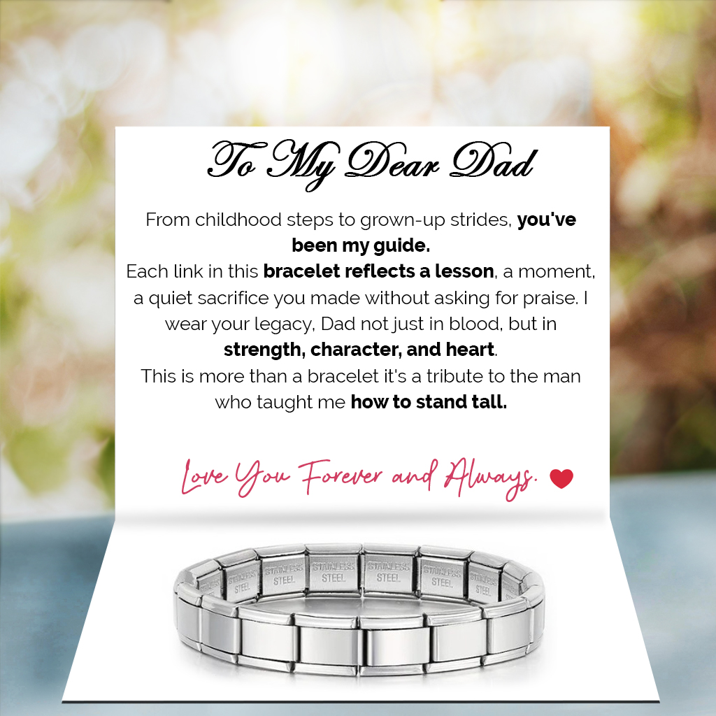 Crafted with polished stainless steel in a timeless linked design, this bracelet embodies permanence and resilience — just like Dad. Perfect for Father’s Day, birthdays, Christmas, or a milestone celebration, it’s a daily reminder that his legacy lives on through you.