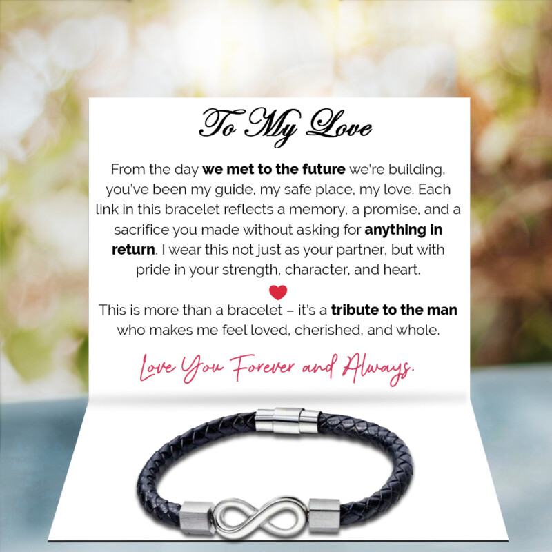From the day you met to the future you’re building together, he’s been your guide, your safe place, and your greatest love. Each link of the Infinite Valor Bracelet represents a memory, a promise, and the quiet strength he carries every day. More than an accessory, this piece is a tribute to his courage, loyalty, and heart – a reminder that he’s the man you’ll always choose, today and forever.