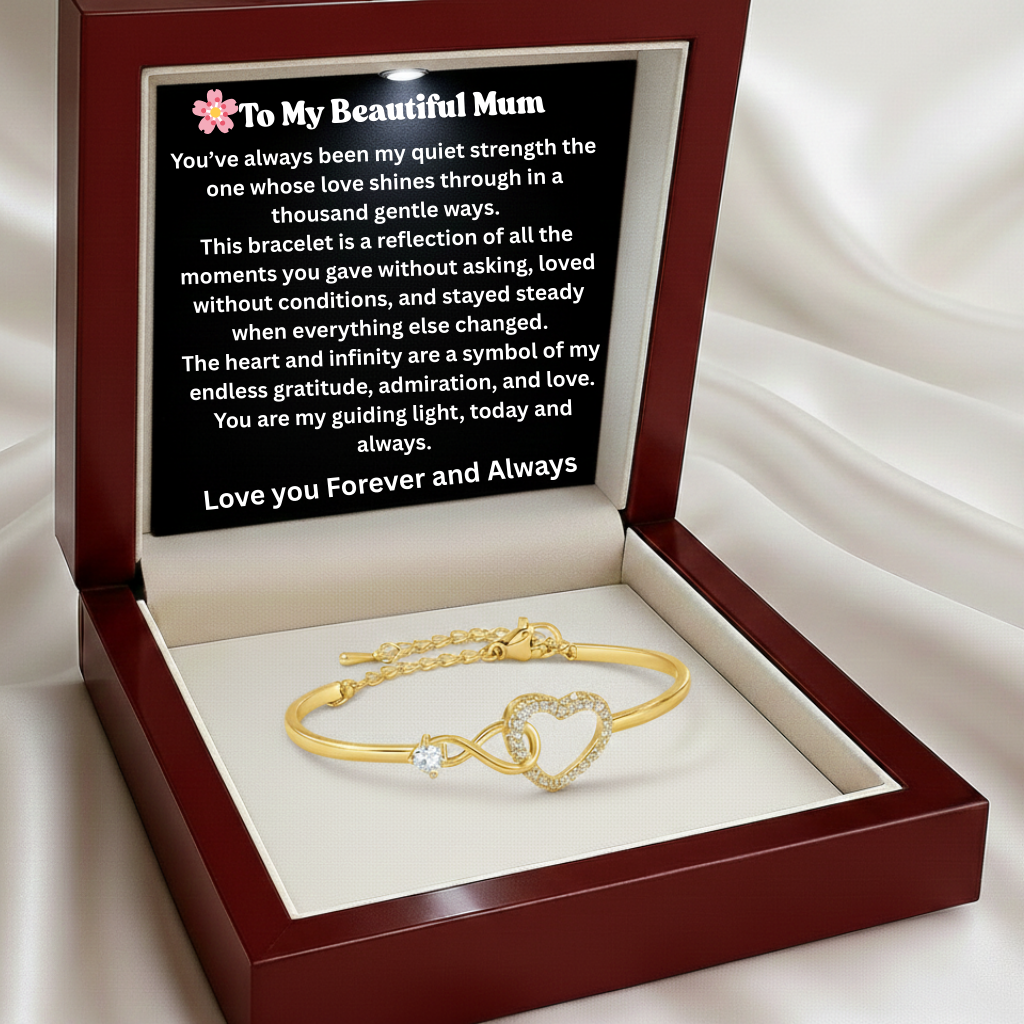This elegant infinity heart bracelet represents a bond that continues to grow through every season of life together. Thoughtfully designed for everyday wear, it serves as a gentle reminder of the connection you share built on love, commitment, and appreciation.