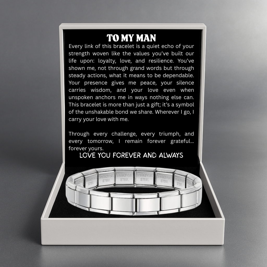 The Timeless Links Bracelet is more than steel – it’s a powerful symbol of resilience, dreams, and unwavering love. Each link reflects the strength of your bond and the unbreakable connection that carries you through life’s journey. It’s a daily reminder that no matter where life takes you, love walks with you always.