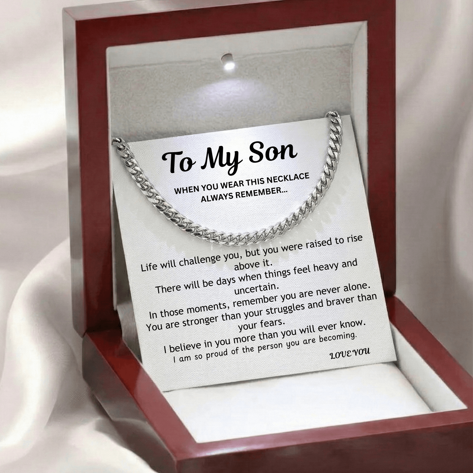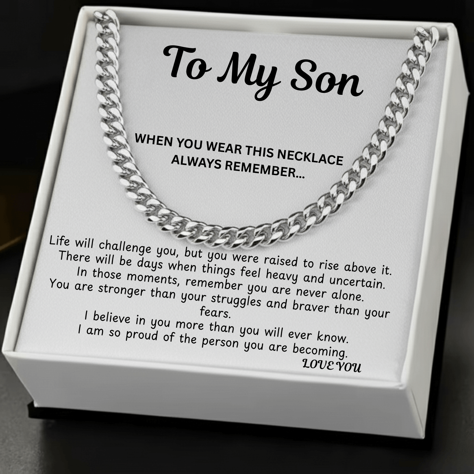 To My Son – Always With You – Strength and Protection Cuban Chain Necklace