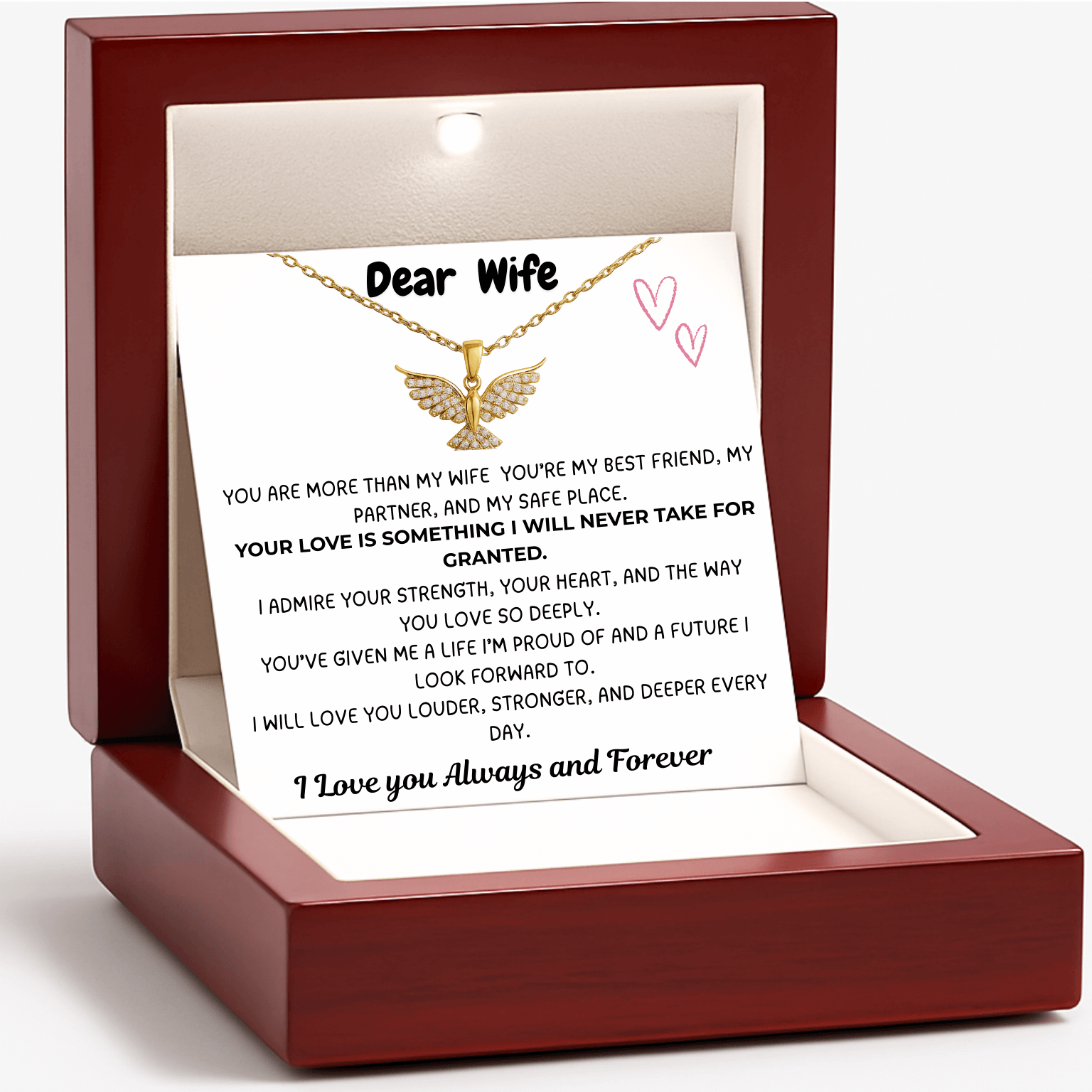 You are more than my wife you’re my best friend, my partner, and my safe place. Your love is something I will never take for granted. I admire your strength, your heart, and the way you love so deeply. You’ve given me a life I’m proud of and a future I look forward to. I will love you louder, stronger, and deeper every day. The perfect gift for anniversaries, Valentine’s Day, birthdays, or any moment you want her to feel like your forever strength with wings.”