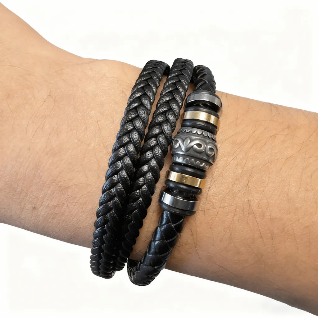The bracelet features a premium braided leather strap and a polished stainless-steel clasp engraved with Love You Forever - a timeless symbol of guidance and strength.